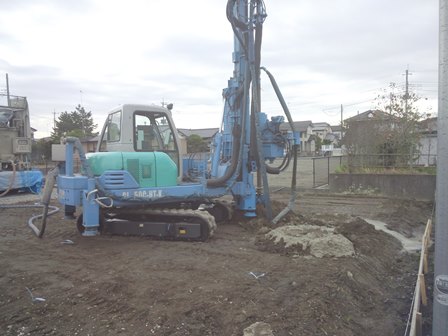 こんにちは。工事の小林です。行田市のH様邸地盤改良工事を行っている写真です。この工事が終わってから、基礎工事を開始します。