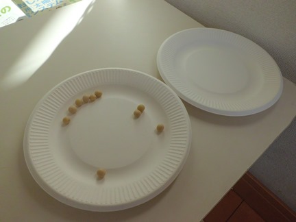 制限時間内に箸で豆を10個違うお皿に移動できれば