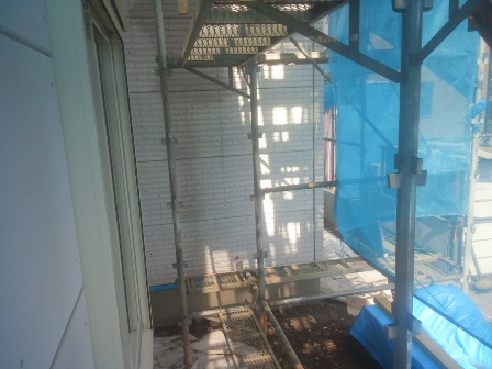 こんにちは。工事の小林です。少しわかりにくいと思いますが、外部のALCの工事を行っています。予定では、後、2日で完了になります。その後にシーリング(防水)処理の工事を行います。