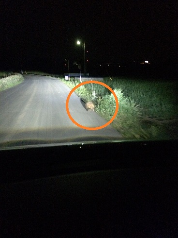 そしてタヌキが50Mほど時速20~30kmで私の車の前を 本気でダッシュしてました・・・。
