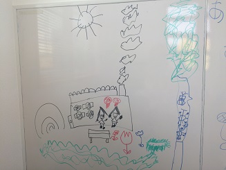 ホワイトボードにお菓子の国を描いてくれたのがとっても上手だったので写メらせていただきました