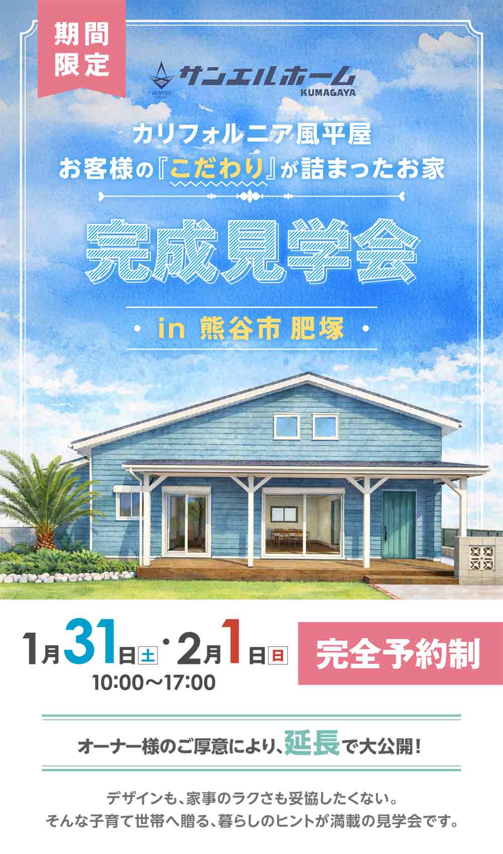 【熊谷店】カリフォルニア風平屋完成見学会 in 熊谷市肥塚