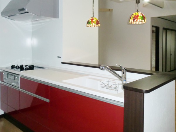 リビングと繋がっています。襖と照明がマッチしていますね。