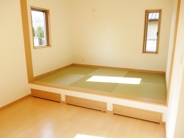 1段高くなっている下には収納スペース付きです。腰掛にもちょうどいい高さです★ -