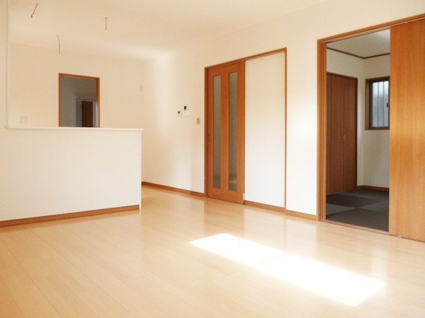 対面キッチンのリビングはお子様の様子も見られるので安心です。日当たりもバッチリです。