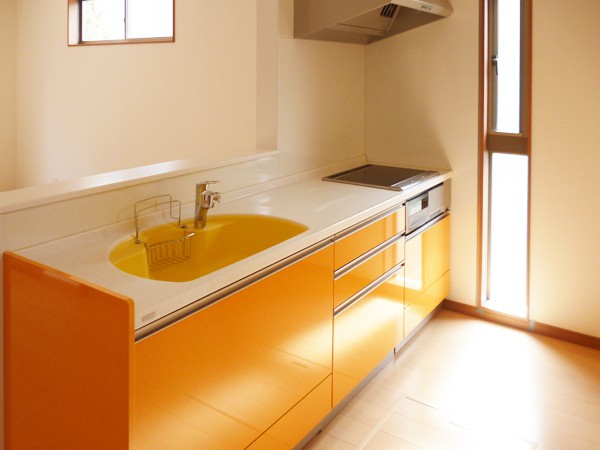 オレンジ色のキッチンは奥様のお気に入りポイントです。