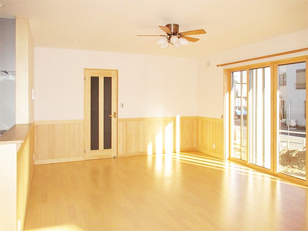 腰板パネルの壁に、無垢のドアとオシャレなリビングはS様のこだわりがたくさん詰まっています♪ -