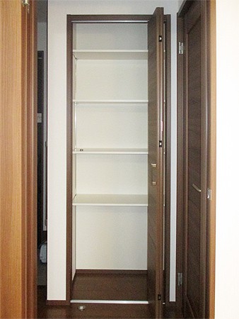 ホールの収納スペースには可動棚を設けました。