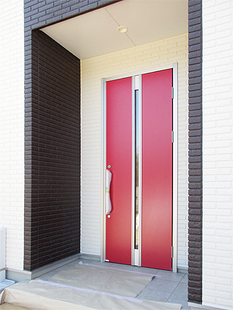 玄関色と合わせ、赤にしました!勝手口が付いているので、お部屋の中を通らずゴミが出せたり、お庭にすぐ行けたりとママも嬉しいですね☆