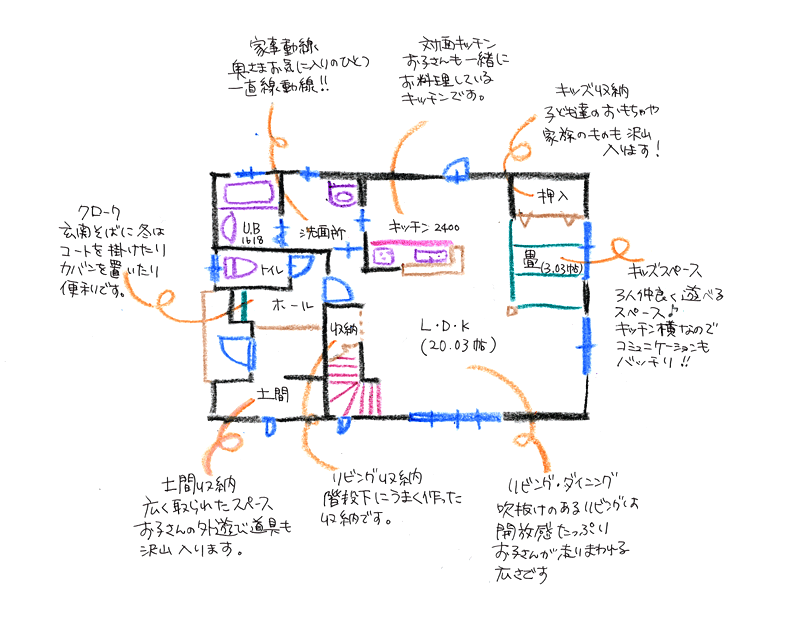 あと、やっぱりキッチンから洗面、お風呂、その直線というか動線がすごく良いと思います。