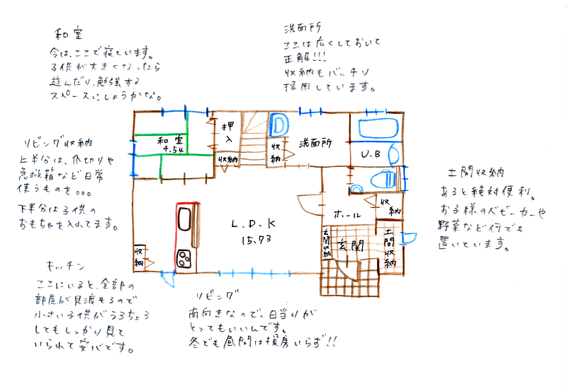 玄関から言うと土間収納もすごく広いし、洗面所もすごく広くて使いやすいし、小さい子供がいるのですごく助かっています。