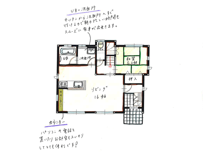 こだわったっていう所はあんまりないんですけど、いつも家にいないので帰って来て忙しいので、食洗機が付いてたりとか、トイレそうじが楽だったらいいな!とかそうゆう所はこだわったと思います。