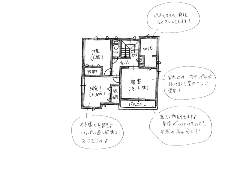 モデルハウスってどうしても大きく建ててるので、30坪の家でこの間取りですって言われても、建って住んでみると、もうちょっと広い方が良かったかな?って思うので。