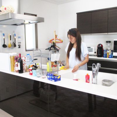 私はまだホテル感覚♪キレイすぎて、しかもまだ2人しかいないから帰ってきてもどっか旅行に行ってホテルに帰ってきたみたいな感じがまだちょっとある。でも、ご飯を作っている時は、あー、自分の家なんだなって思う。まだキレイだからね、今のうちは!