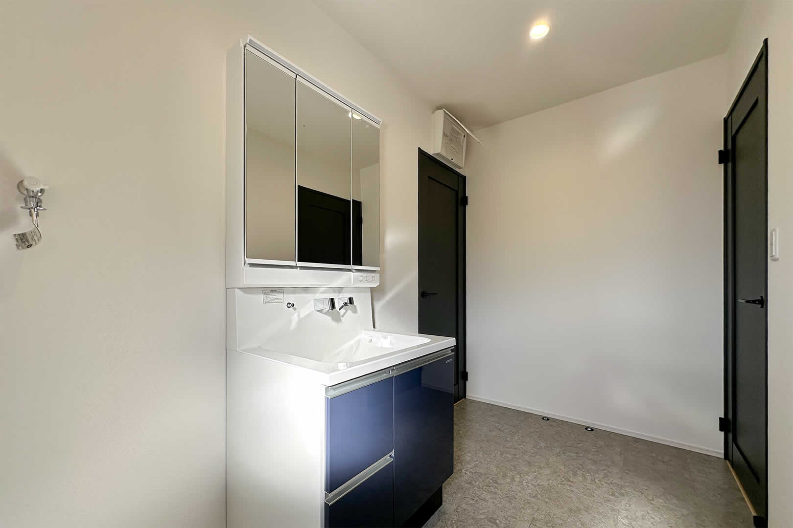 パントリーともつながる便利な動線。家事がしやすく、使い勝手のいい広さの洗面スペースです。