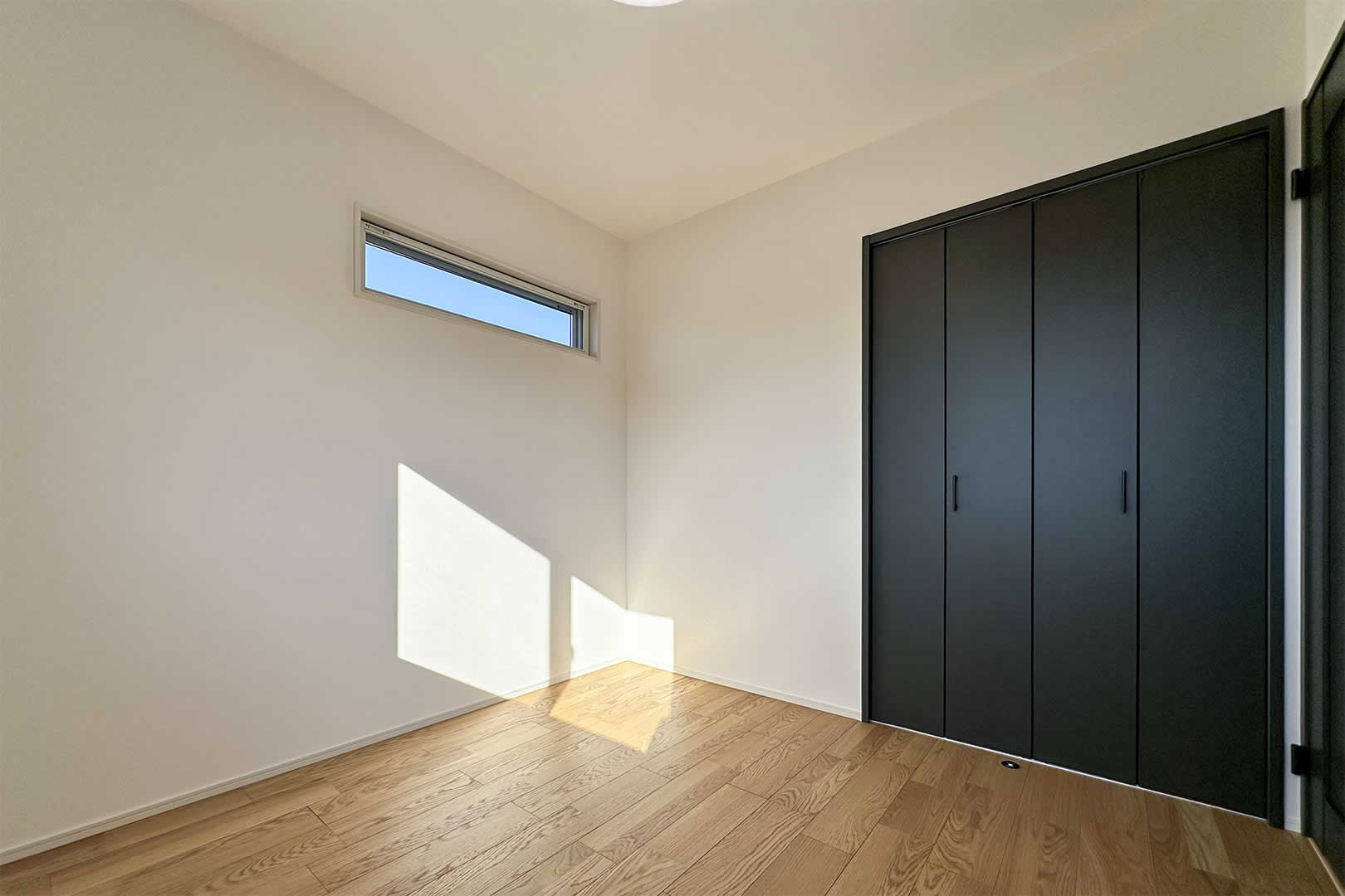 コンパクトながら使いやすい洋室。ブラックの収納がアクセントになり、スタイリッシュな印象に。