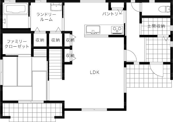 水まわりすべてが一直線に並び動線が短くまとまっています。