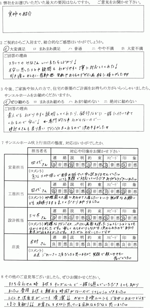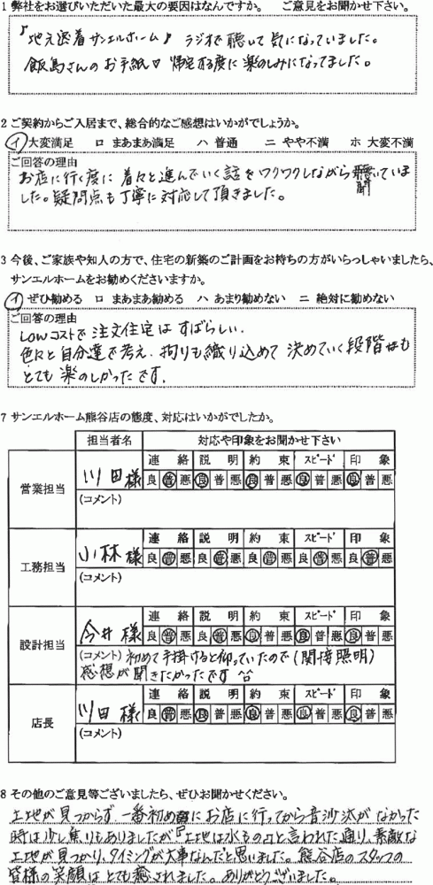 お客様の声|埼玉県の土地・不動産・オシャレな注文住宅