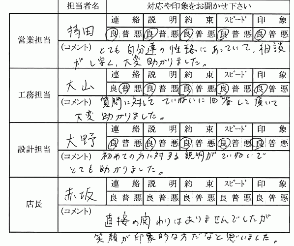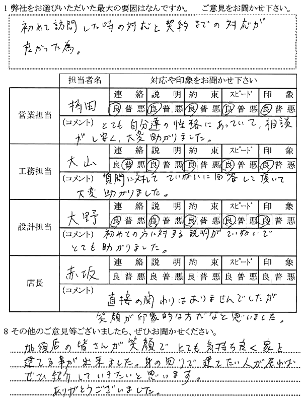 加須店の皆さんが笑顔で、とても気持ち良く家を建てることが出来ました。