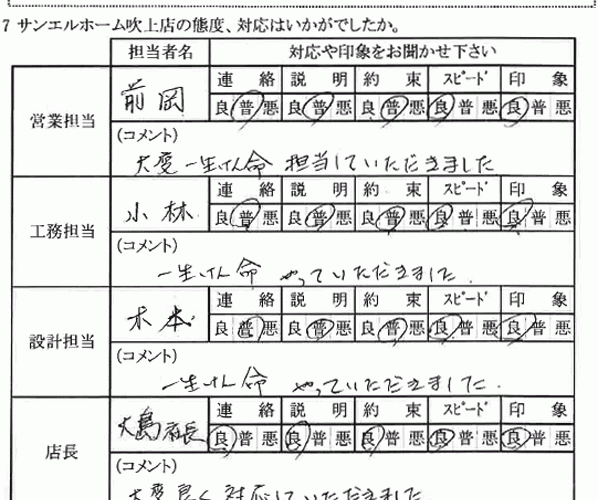 スタッフの方達の努力により、大変すばらしい家が出来ました。