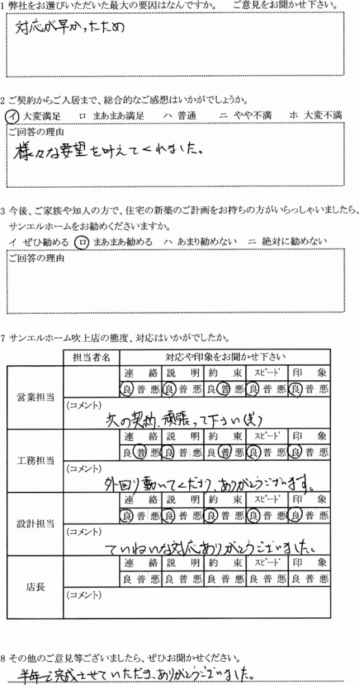 さまざまな要望を叶えてくれました。