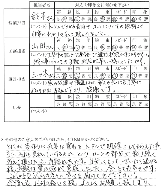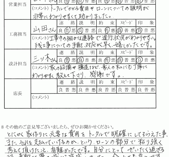 ローンの部分で粘り強く考えていただけたこと、有難かったです。