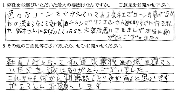 色々なローンをかかえていましたが、新聞チラシでサンエルさんを知り、すぐ相談に行きました。