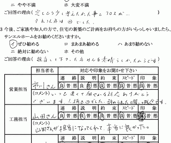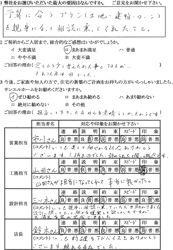 予算に合うプラン(土地・建物・ローン)を親身になって相談に乗ってくれた。
