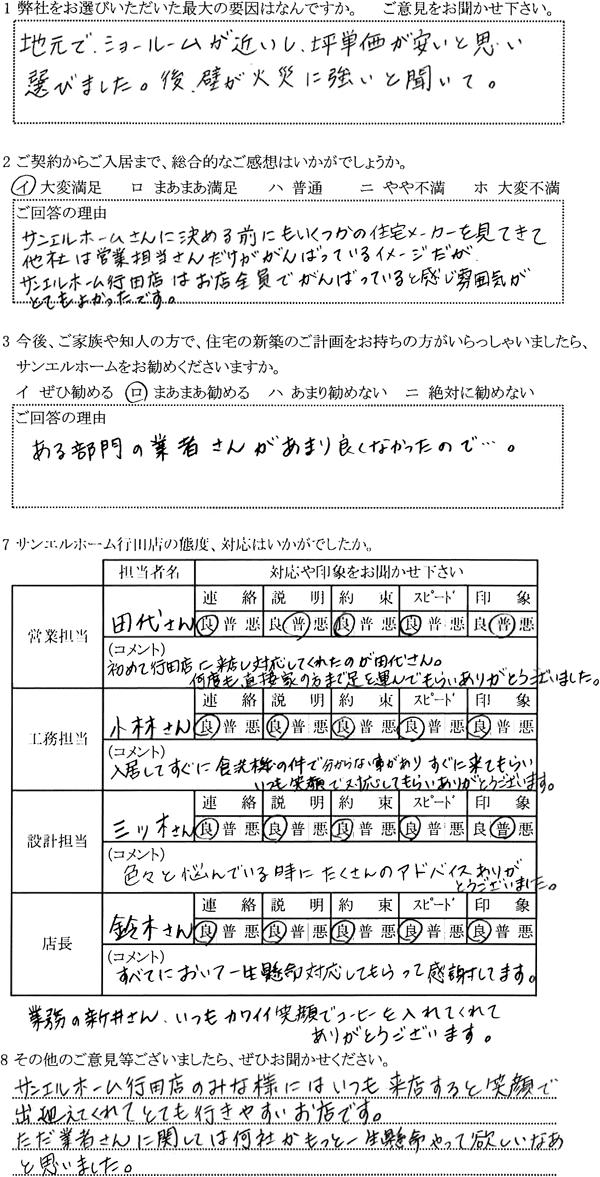 坪単価が安い、壁が火災に強いと聞いて選びました。