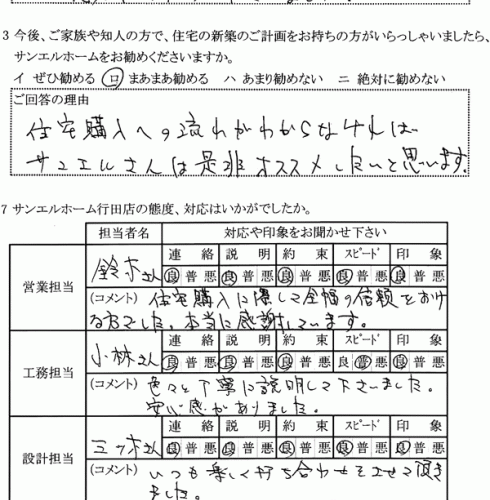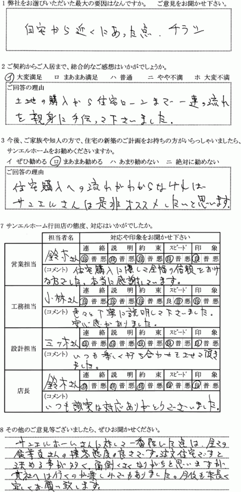土地の購入から住宅ローンまで一連の流れを親身に手伝ってくださいました。