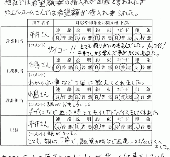他社では希望額の借入れが困難と言われたが、サンエルホームさんでは希望額が借入れられた。