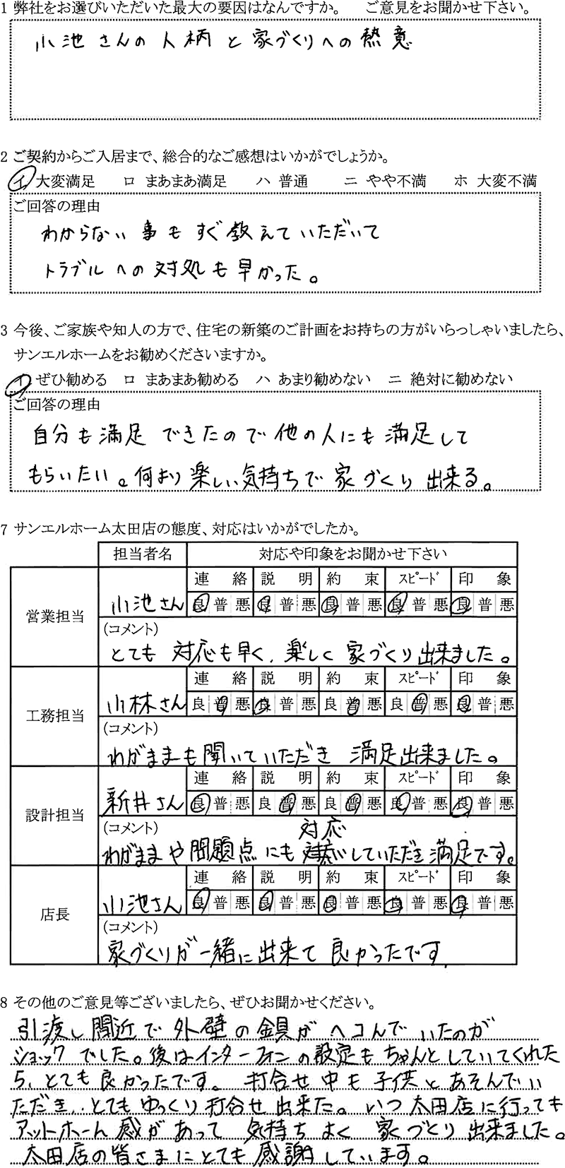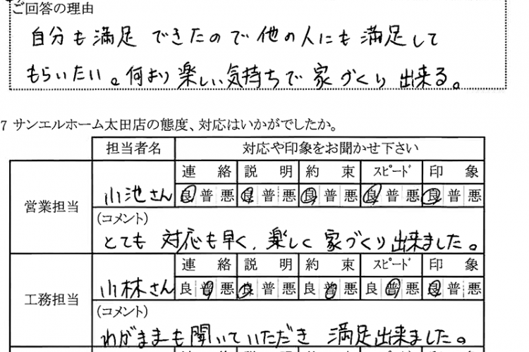 いつ太田店に行ってもアットホーム感があって気持ちよく家づくりできました。