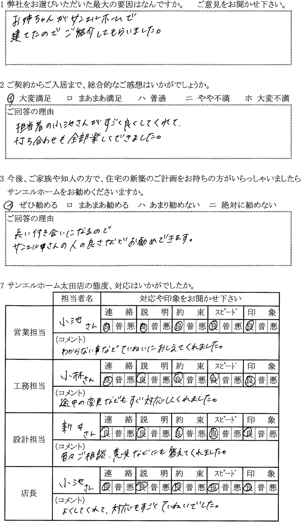 サンエルホームを選んだ最大の理由は?