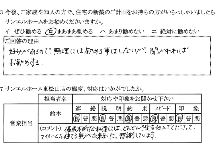 知人等にサンエルホームを勧めるか?