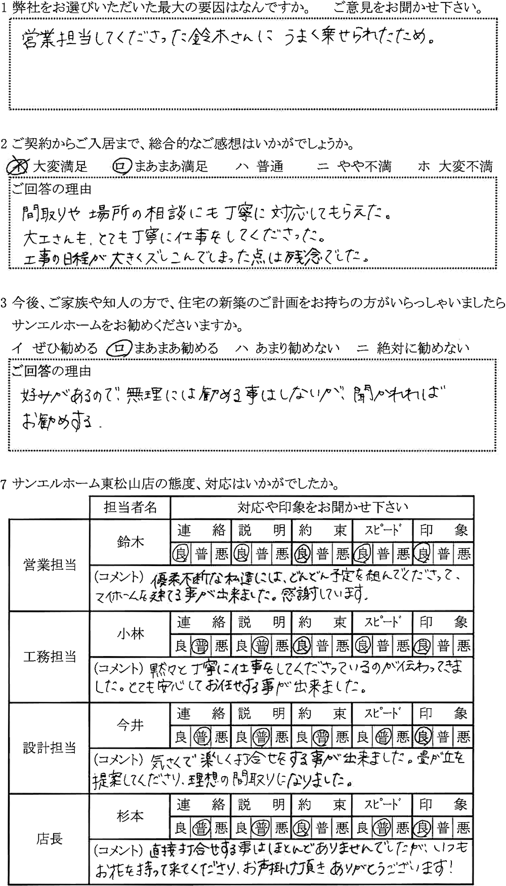 サンエルホームを選んだ最大の理由は?