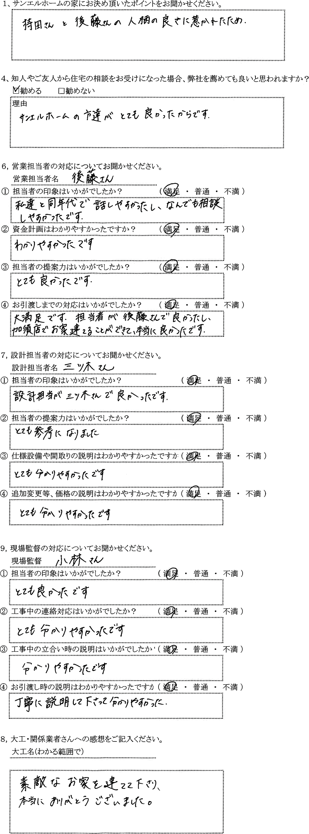 サンエルホームの方達がとても良かったからです。