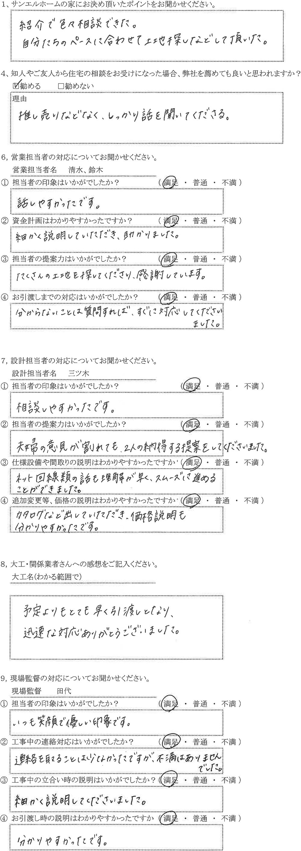 予定よりもとても早く引渡しとなり迅速な対応ありがとうございました。