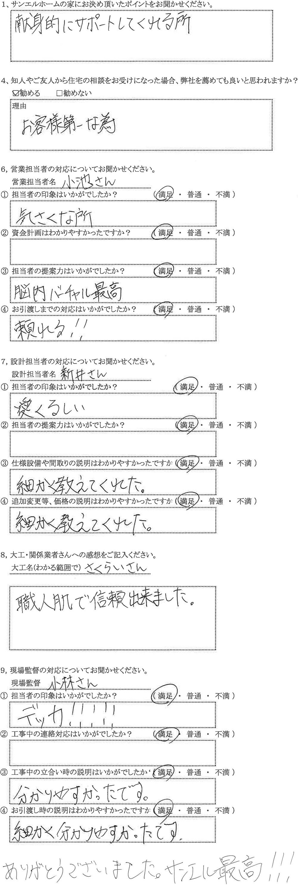 ありがとうございました。サンエル最高!!!|埼玉県の土地・不動産・オシャレな注文住宅