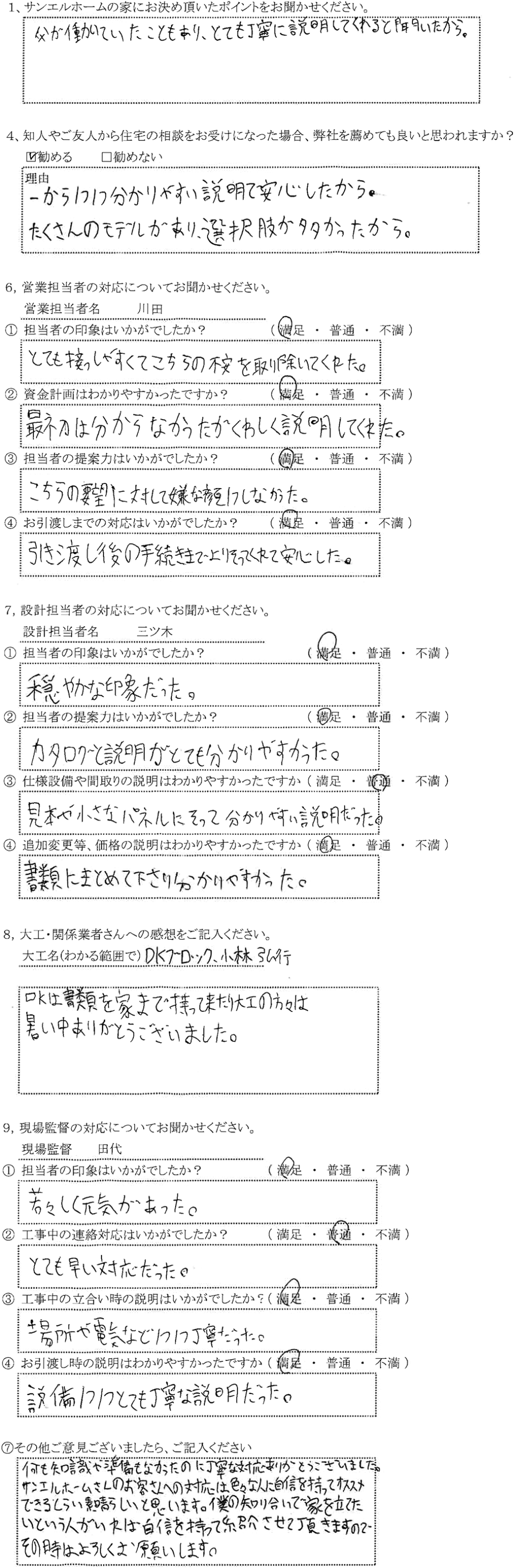 サンエルホームさんのお家への対応は色んな人に自信を持ってオススメできるくらい素晴らしいと思います。僕の知り合いで家を立てたいという人がいれば自信を持って紹介させて頂きますので、その時はよろしくお願いします。