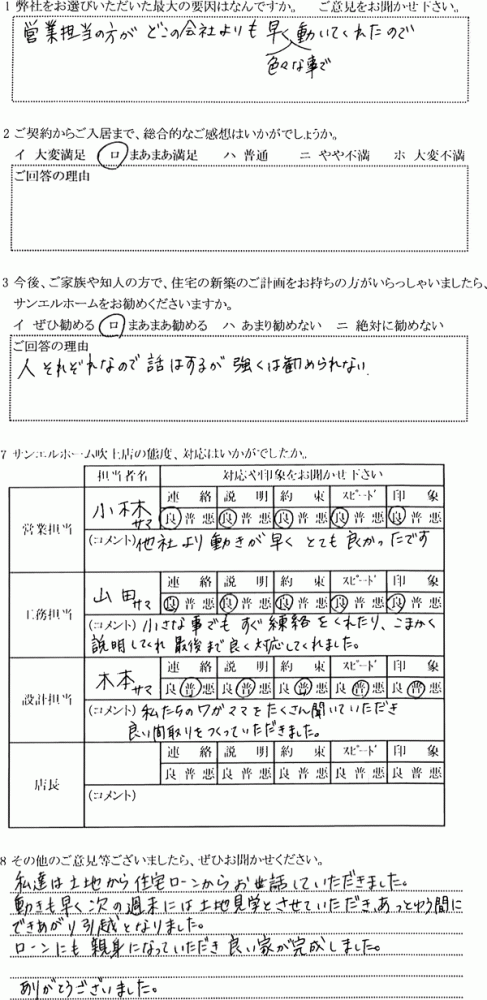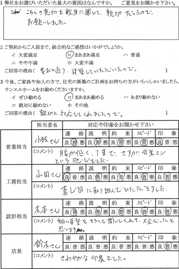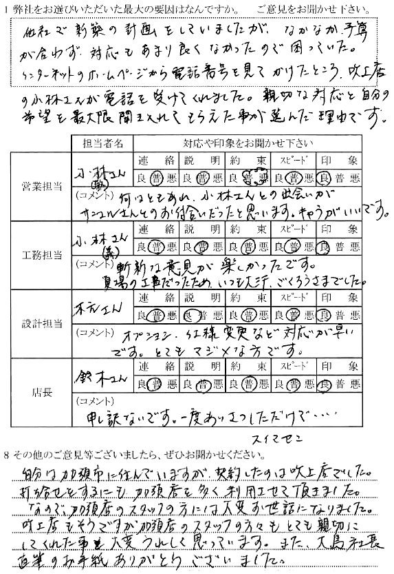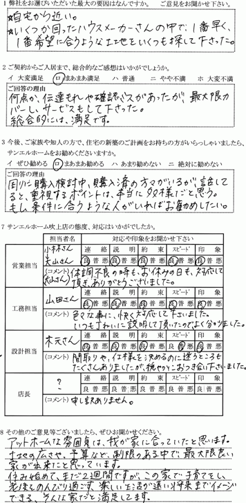 お客様の声|埼玉県の土地・不動産・オシャレな注文住宅