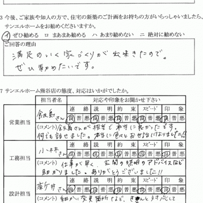 お客様の声|埼玉県の土地・不動産・オシャレな注文住宅