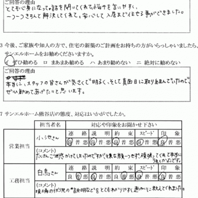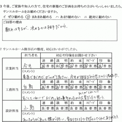 お客様の声|埼玉県の土地・不動産・オシャレな注文住宅