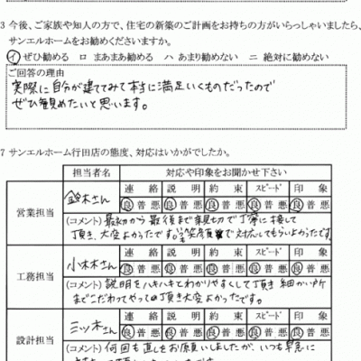 お客様の声|埼玉県の土地・不動産・オシャレな注文住宅