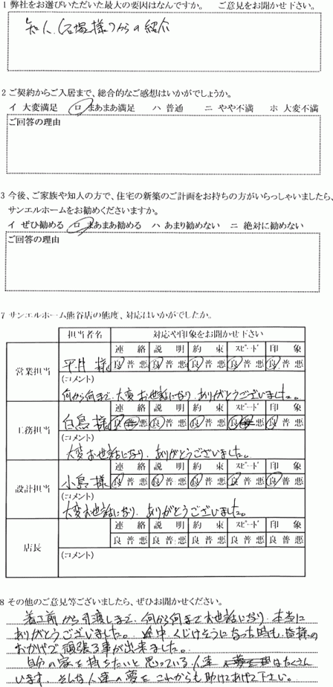 お客様の声|埼玉県の土地・不動産・オシャレな注文住宅