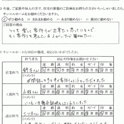 お客様の声|埼玉県の土地・不動産・オシャレな注文住宅