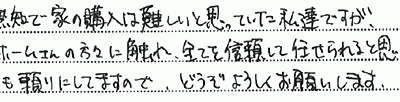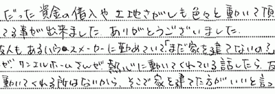 一番不安だった資金の借り入れや土地探しも色々と動いていただい...
